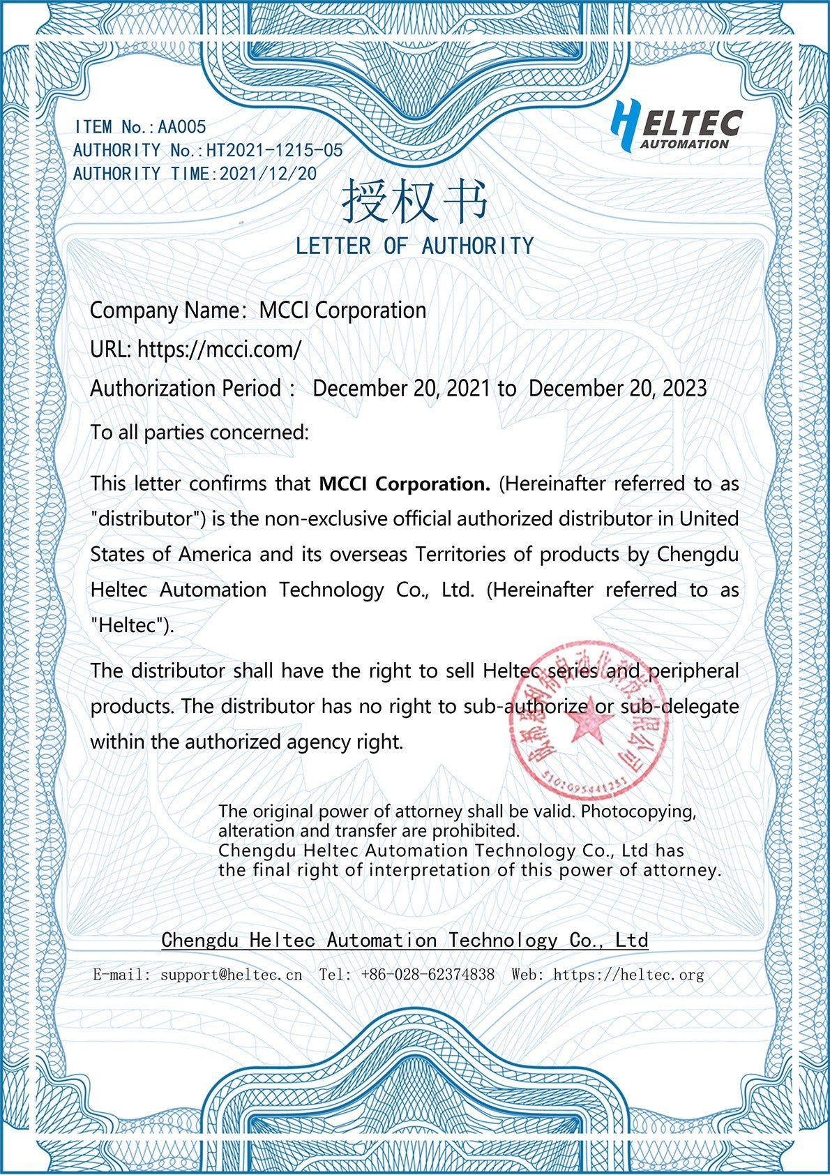 LoRaWAN is a registered trademark of the LoRa Alliance. LoRa is a registered trademark of Semtech Corporation. Heltec is a trademark of Heltec Automation. MCCI is a registered trademark of MCCI Corporation. All other trademarks are the property of their respective owners.